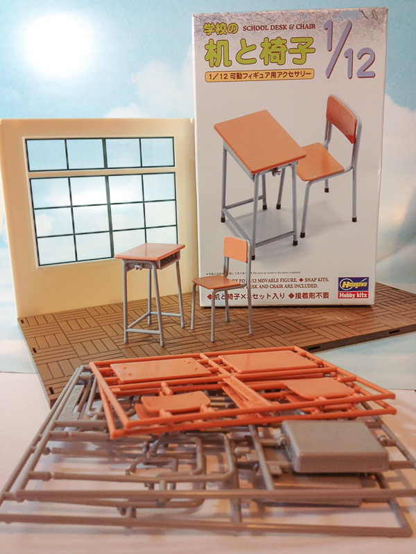 I didn't have the Nendoroid School Play Set Ver. (Only the Bunkasai Ver.), so I purchased this miniature school desk and chair plastic kit.