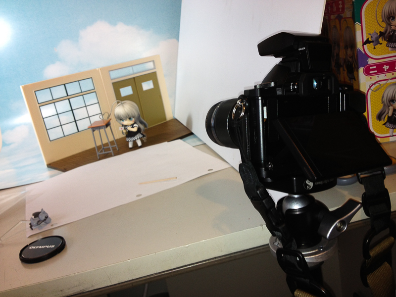 I hand made the letter from two pieces of blank piece of papers and used a red ballpoint pen for the heart. I used glue (type that rubs off) to attach the letter on Nyaruko's hand.